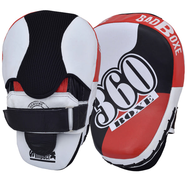 BADBOXE offers you this pair of leather curved coaching mitt, they offer optimal shock absorption during impact. Lightweight and handy perfect finish. What made it the reference of many professors! Characteristics : Material:Leather Length: 25cm Weight: 450g Sold by pair
